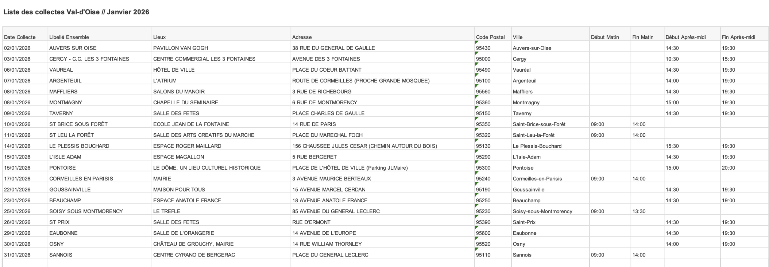 Consultez toutes les dates de collectes de sang mobiles EFS-IDF dans le département du Val-d’Oise pour le mois de janvier 2026.