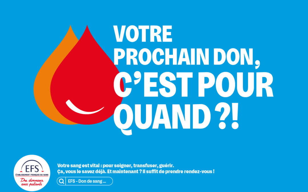 Une bonne occasion de venir tester ces nouveaux horaires et de programmer un don de sang, de plasma ou de plaquettes (dondesang.efs.sante.fr/ou-donner)